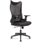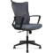 Эргономичное вращающееся кресло со средней спинкой. Сетчатая спинка рамка PU + регулируемая опора для поясницы Черный фиксированный подлокотник, Т-образный. Сиденье ткань , формованное PU + пластиковая отделка снизу Сертификат BIFMA, газлифт класса 3 механизм качания Топ ган База PU + PU ролики, бесшумный материал